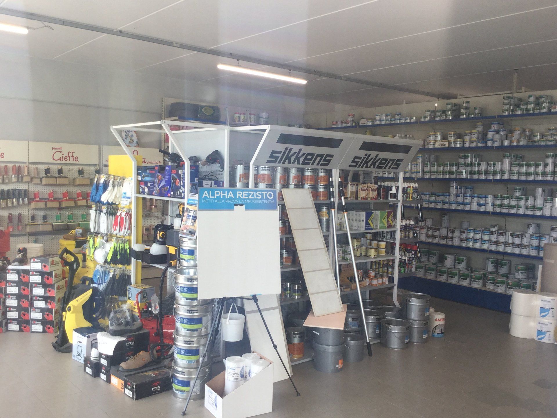 Trattiamo vernici e colori di nuova generazione, da Marzo uscirà una nuova linea di vernici della Sikkens che farà gola a chiunque: Alpha Rezisto, una vernice innovativa dalla finitura opaca per impiego su muri interni, estremamente resistente alle macchie. Molto facile da pulire, crea una barriera che impedisce alla macchia di penetrare nel colore: troverete questa nuovissima linea proprio da noi, perché aspettare?